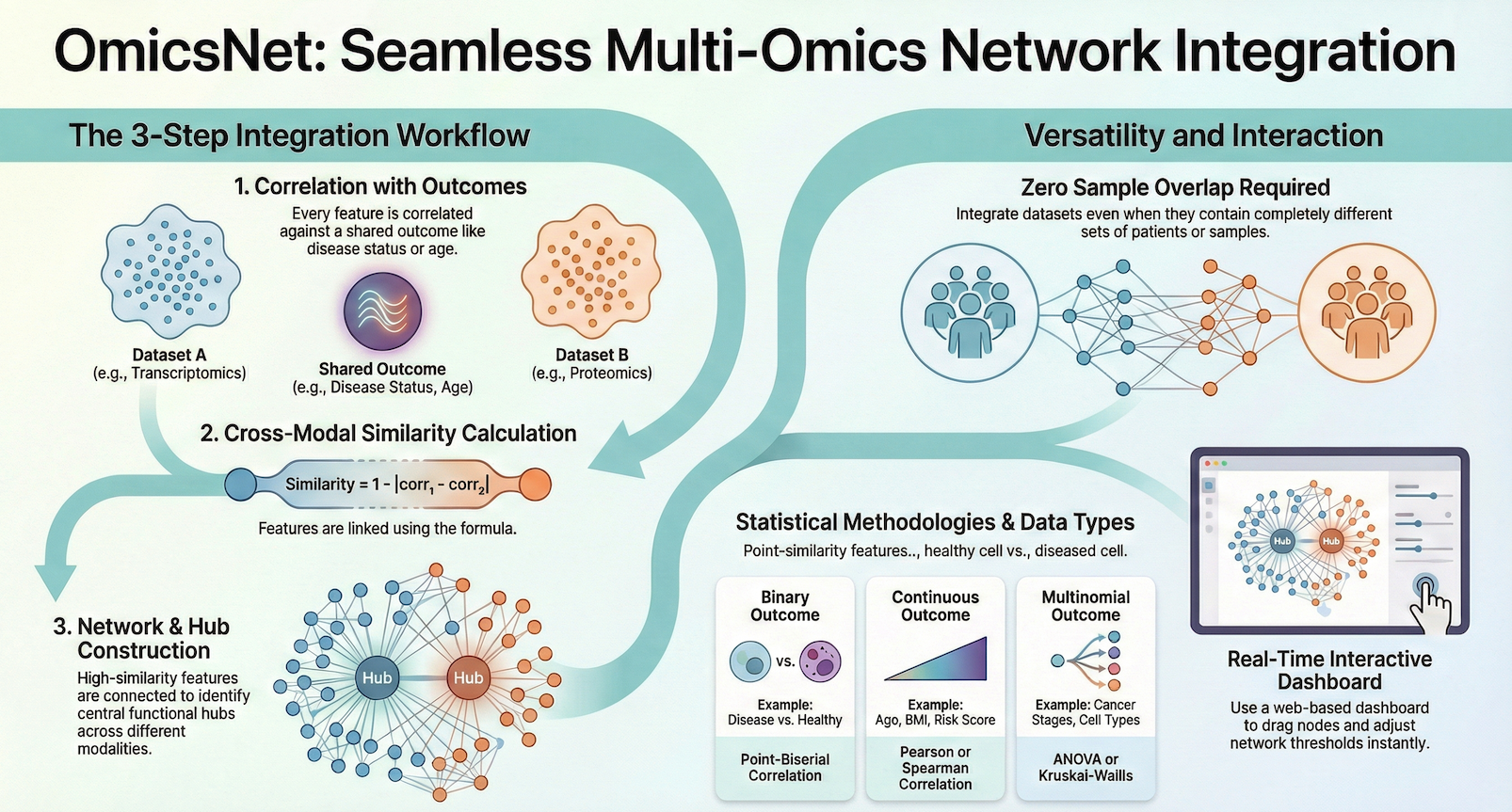 Deep learning framework applying ImageBind’s binding modality concept to integrate genomics, transcriptomics, proteomics, and metabolomics data.